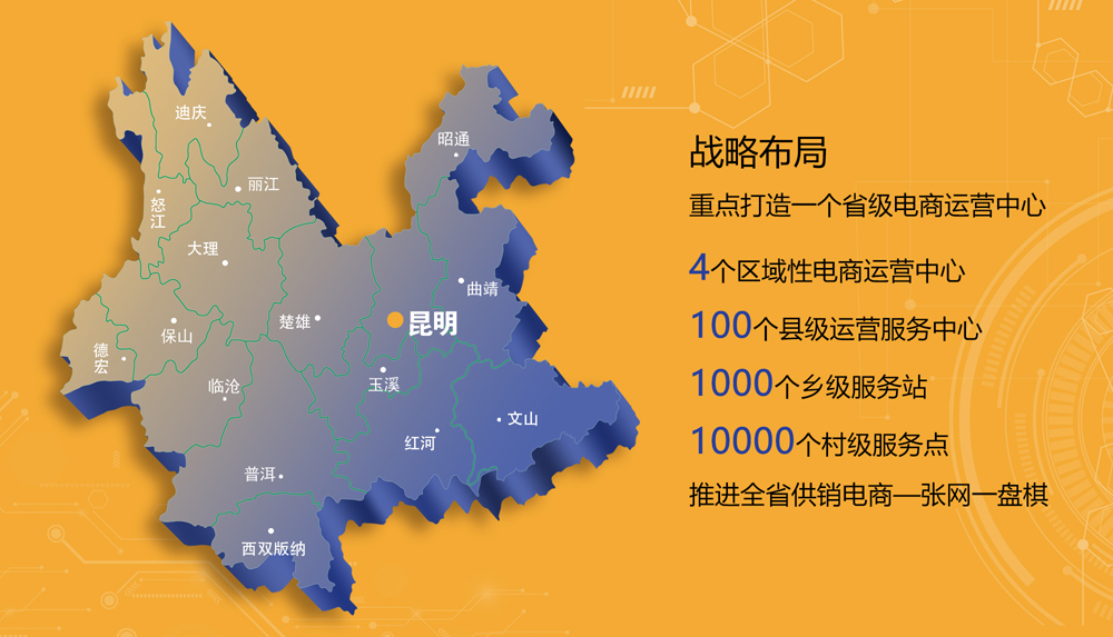 是省供销社推动高原特色产业发展和推进供销系统电子商务发展的重要抓手。依托集服务与交易于一体、具有中国·350vip8888新葡官网特色的电商平台“350vip8888新葡官网”,构建云南高原特色农产品、农业生产资料网络服务和交易体系,为农村市场主体提供政策、咨询、信息、培训、交易、投融资等服务。